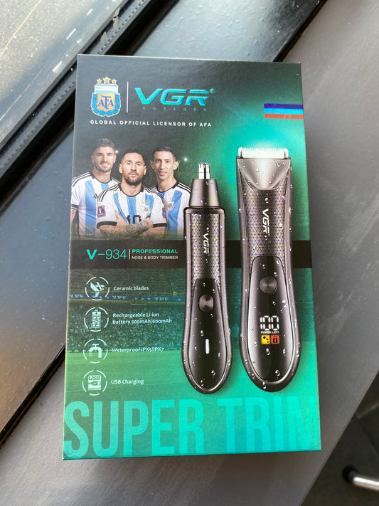 2 In 1 Grooming Kit Set Nose And Beard Trimmer VGR-934 Multi-Purpose Hair Clipper and Trimmer - 500mAh Lithium Battery, Ceramic Blades, IPX7 Waterproof, USB Charging, Multiple Combs