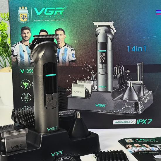V-096IPX7 Professional Hair Trimmer Kit, 14-in-1 Waterproof Grooming Set with Metal Design, 150-Min Runtime, 7000 RPM Motor, Digital Display, USB Charging, Stand