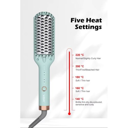 Hair Straightening Brush VGR V-592 , for straight and shiny hair in minutes, Maximum temperature of 220°C, Safe heating heads , 5 heating settings, LED temperature indicator , 360° rotating cable.