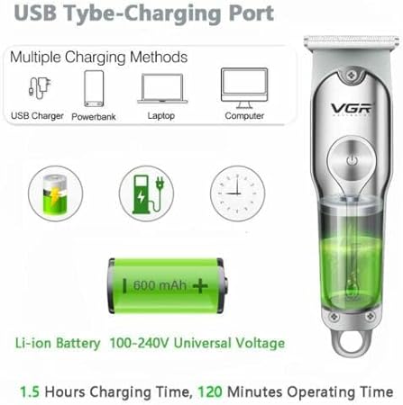 Vgr V-901 Professional Rechargeable Cordless Hair Trimmer with Usb Cable for Men or Family Powered by Rechargeable Lithium-ion Battery