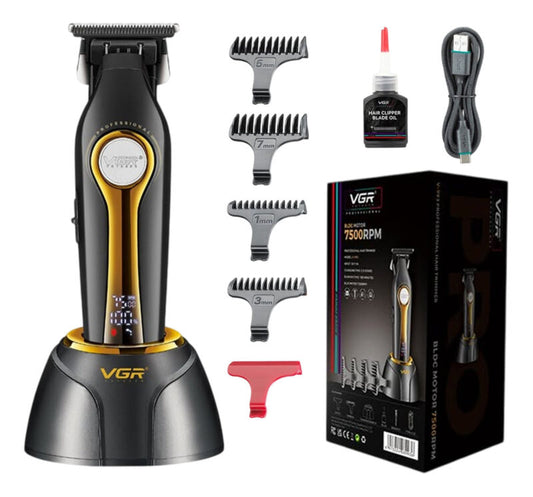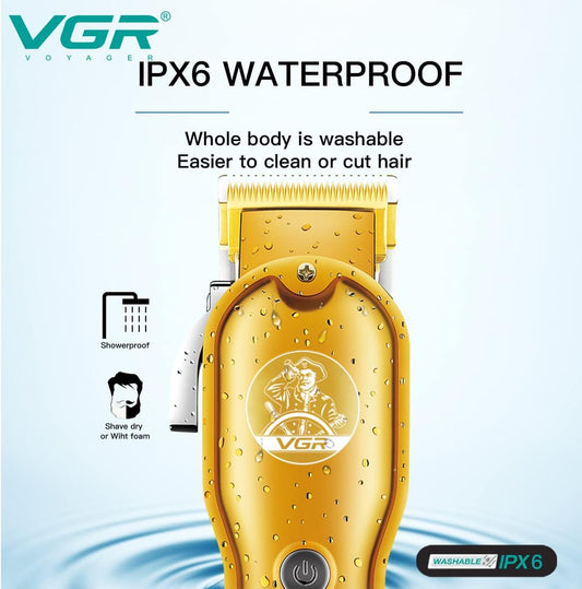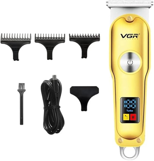 VGR V-650 Professional Hair Clipper with LED Display, Stainless Steel Blades, USB Charging cable, 6 Guide Comb, 2000 mAh Li-ion Battery (Gold)