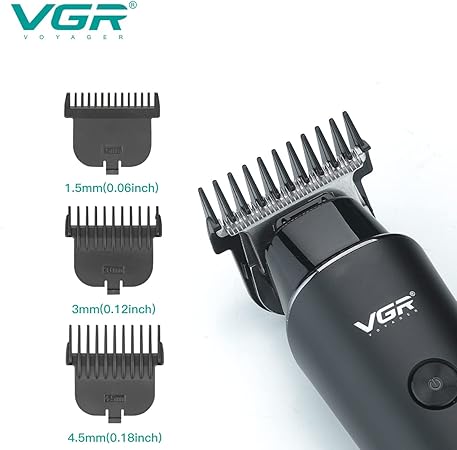 VGR V-937 Professional Rechargeable Hair Trimmer with USB Charging Cable, LED Display, Stainless Steel blades, 3 Guide Combs for Men, 2000 mAh Li-ion Battery (Black).