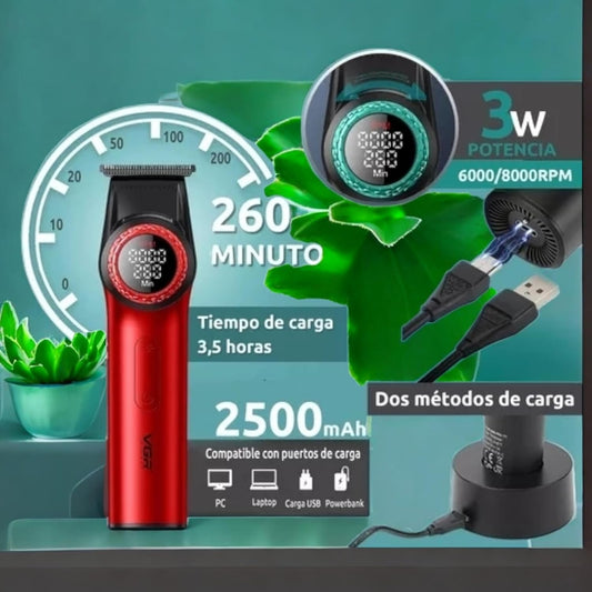 Professional Trimmer - Ceramic and Carbon Steel Blades, 2000mAh Battery, LED Display, Turbo Speed, USB-C Charging, Corded and Cordless VGR-942 Hair Clipper