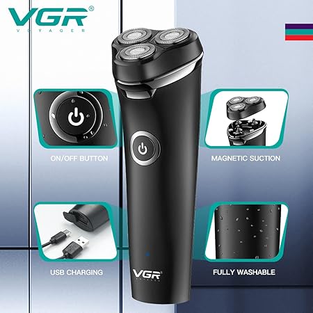 VGR V-319 Premium Cordless Rechargeable IPX6 Fully Waterproof 3 Head Electric Shaver Wet & Dry Rotary Shavers for Men with Magnetic Suction Super-Fast Charge 90 minutes Runtime with LED Indicator