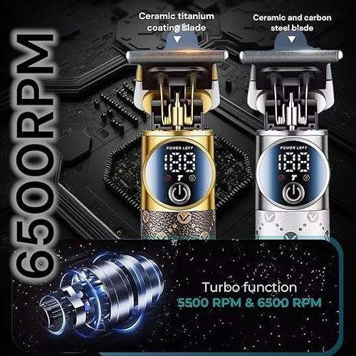 Professional Trimmer - Ceramic and Carbon Steel Blades, 2000mAh Battery, LED Display, Turbo Speed, USB-C Charging, Corded and Cordless VGR-942 Hair Clipper