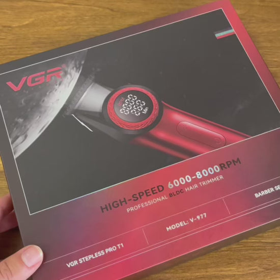 V- 977 Professional Hair Trimmer for Men, 8000 RPM T-Blade Trimmer, Wireless Barber Trimmer with Zero Level, Rechargeable Edge Hairdressers with LED Display (red)